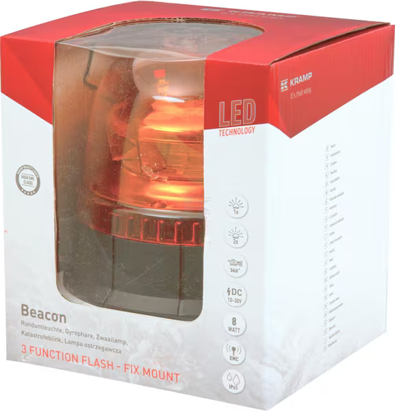 Šī Eiropā ražotā LED bākuguns ir izgatavota no augstākās klases materiāliem, nodrošinot maksimālu redzamību un ilgmūžību. Tas darbojas ar 12/24 V spriegumu (10–30 V diapazons) un piedāvā vairākas funkcijas – zibšņus, dubulto zibšņošanu un rotāciju. Piemērots universālai lietošanai dažādos transportlīdzekļos un tehnikā.