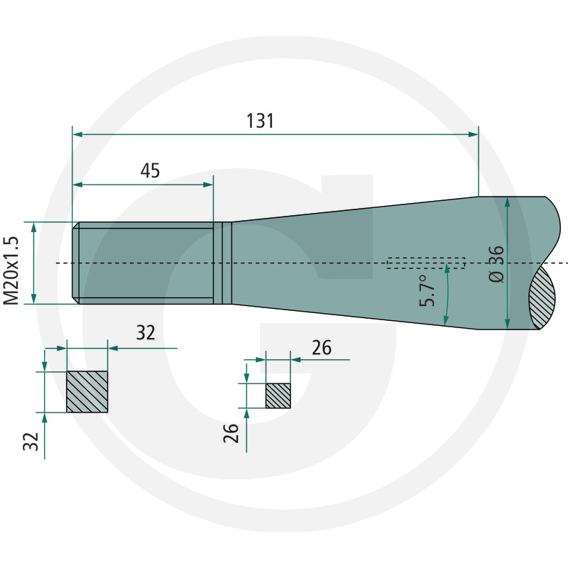 Ieliekts pīķis, M20 x 1,5 mm, kvadrātsveida, konuss K004